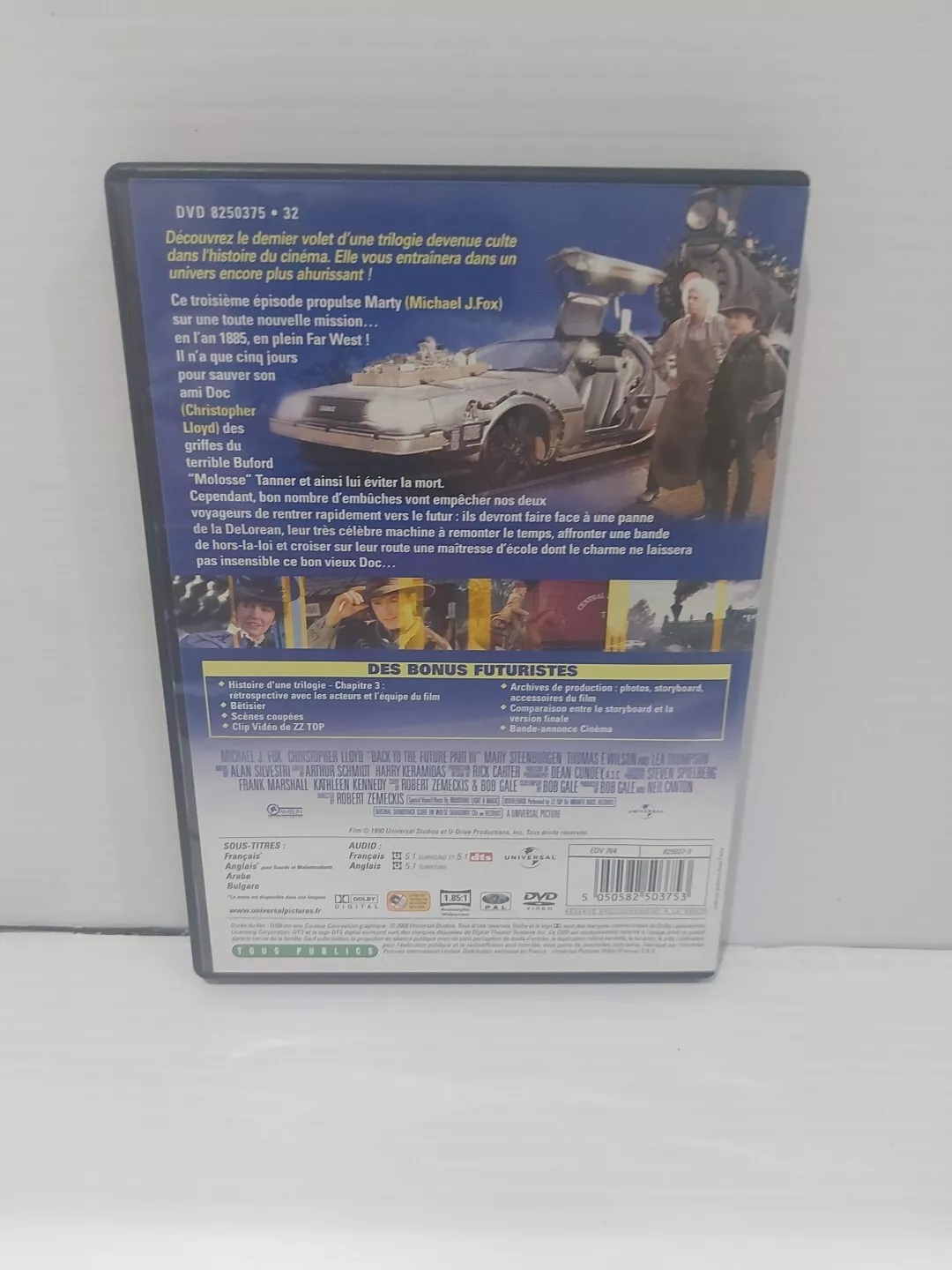 "Back To The Future 3 (French Version)" is a film available in French language. It is the third instalment in the popular "Back to the Future" series. This DVD features the adventures of Marty McFly and Doc Brown as they travel through time to the Wild West. Perfect for fans of the franchise or those interested in a mix of science fiction and comedy.
