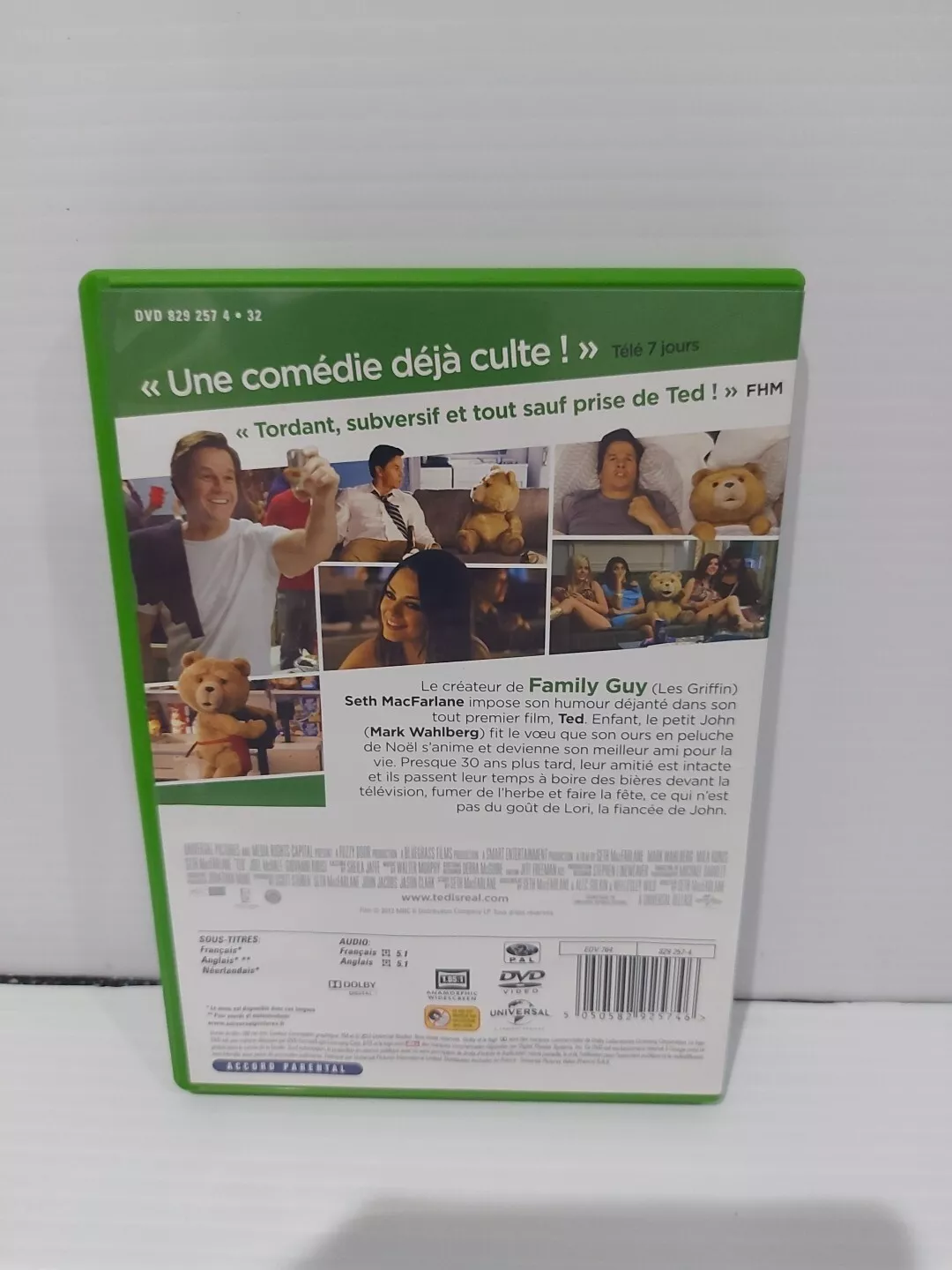 The product is a DVD of the film "Ted", starring Mark Wahlberg, Mila Kunis, and Seth MacFarlane. DVD is French version
